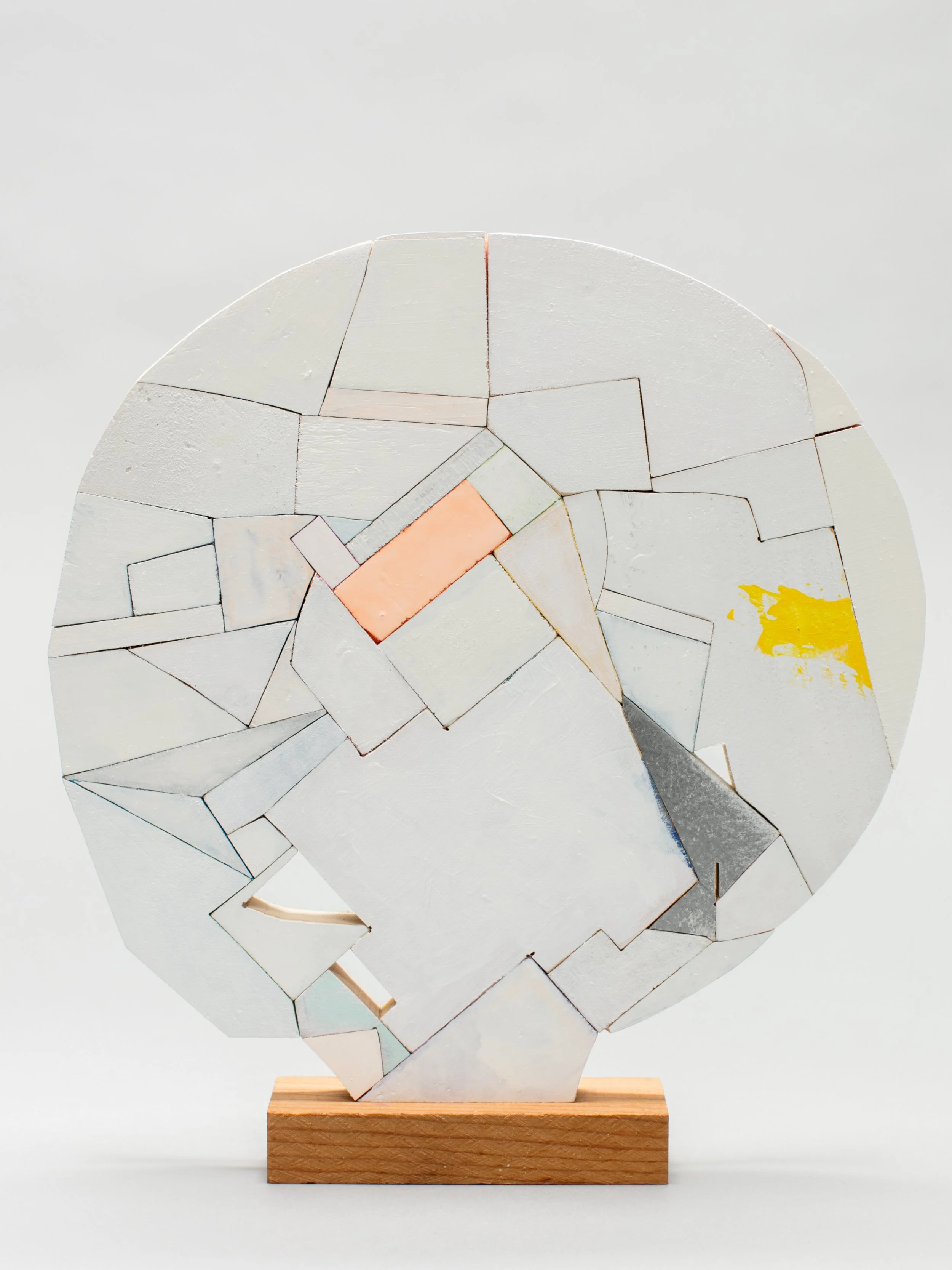 Untitled white wood, acrylic, spray paint, oil, glue 2018